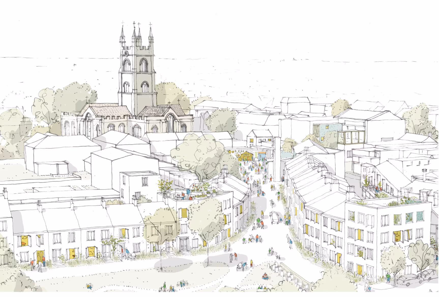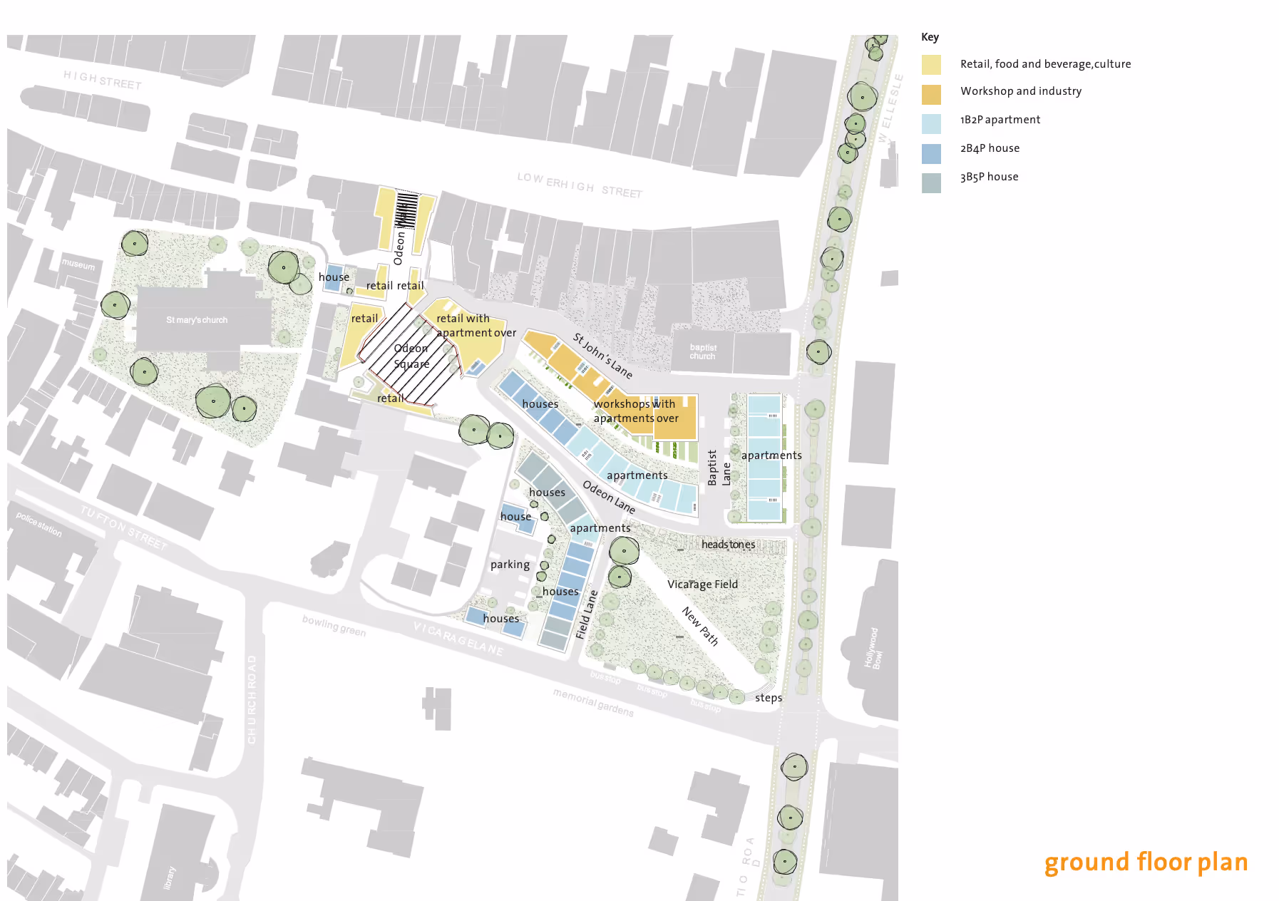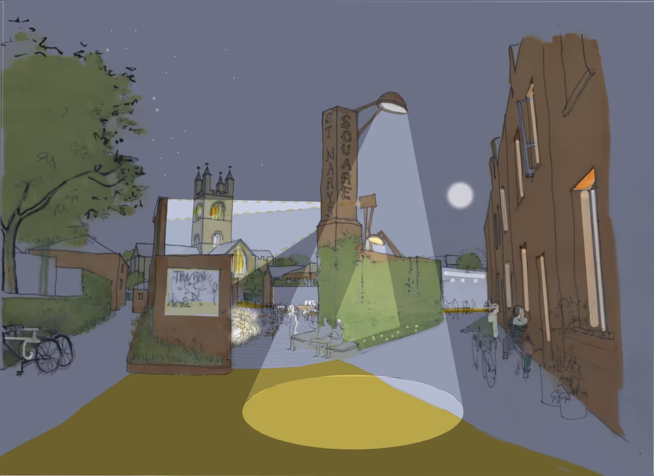 The relocation of the car park and imminent closure of the bingo hall has created an opportunity to bring new homes into the town centre, to restore the dominance of the adjacent St Mary's Church tower, to form a new, more direct pedestrian route from station to town centre, and to create a new public square, bringing new life and commercial opportunities to a high street under threat from online and edge-of-town retail.