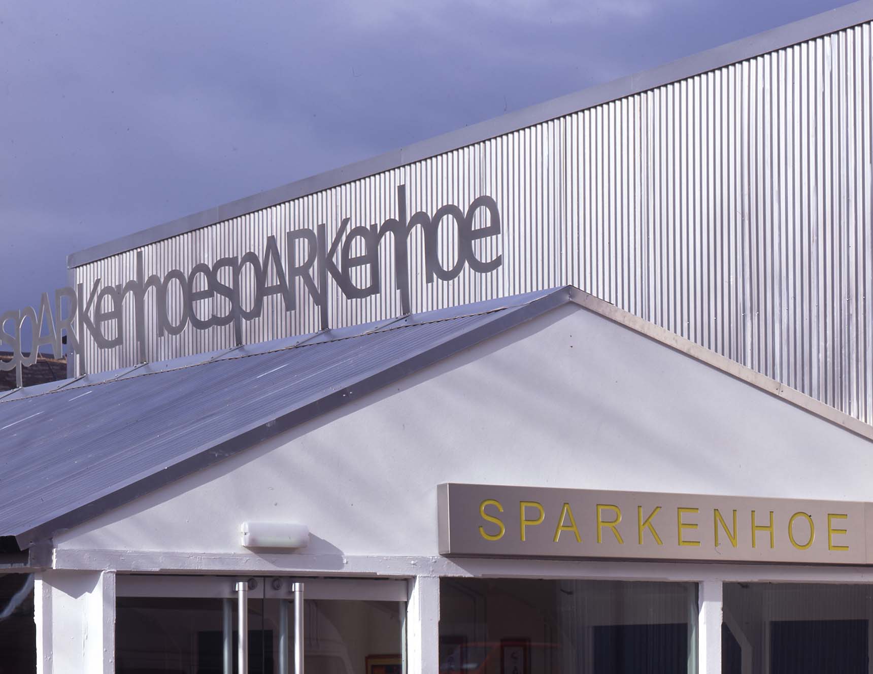 Sparkenhoe Theatre, formed by adding a trapezium shaped theatre box to a derelict tee-shaped prefab, creates a flexible, light-filled, multifunctional set of spaces for the school and its wider community.